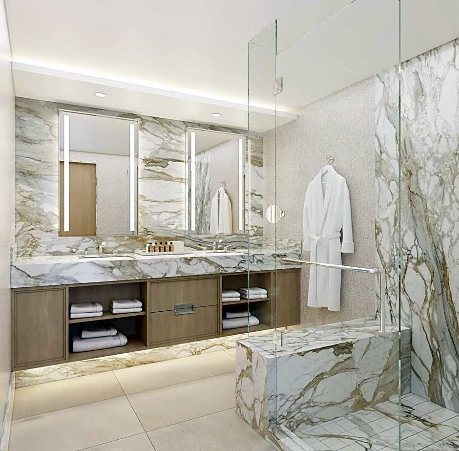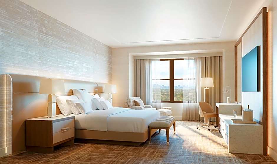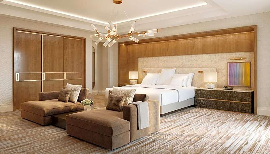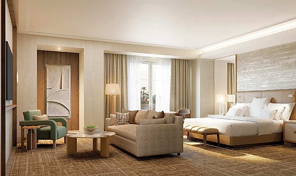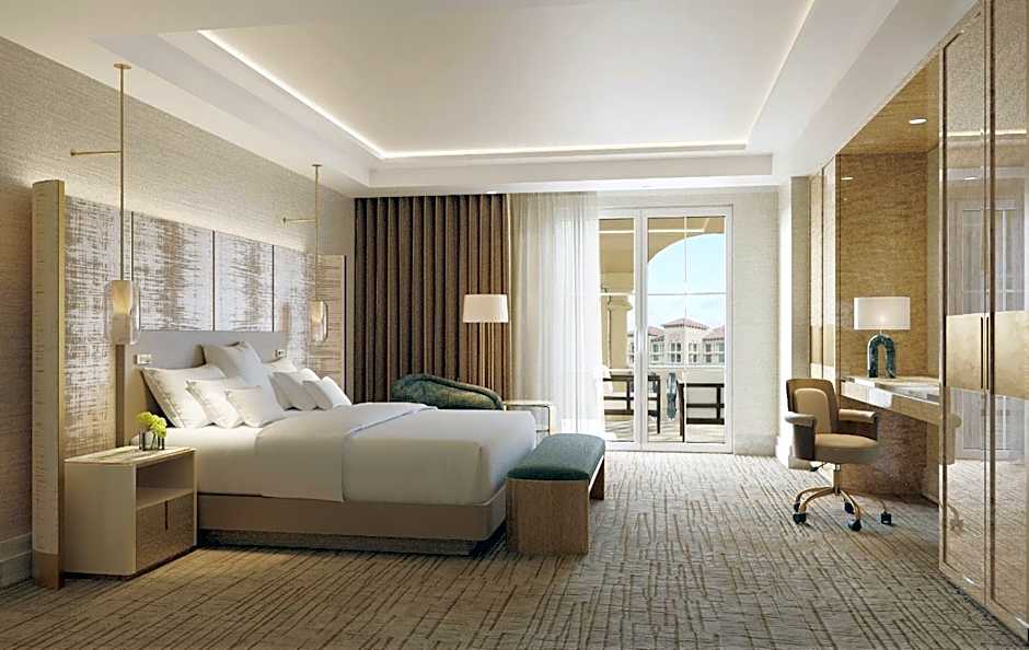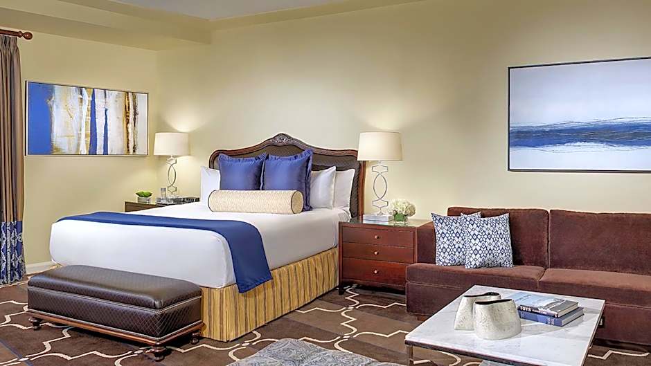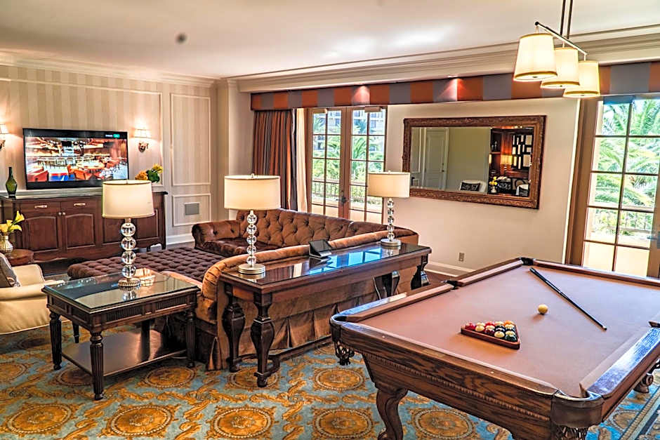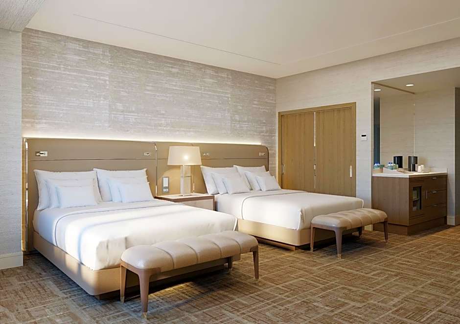 These 500 sq ft rooms are European style decor with 2 queen beds and view of pool. Features include chair and ottoman, a desk, a minibar, Bose sound system. The bathroom has marble, a deep soaking tub and shower. Rooms also have wireless internet.